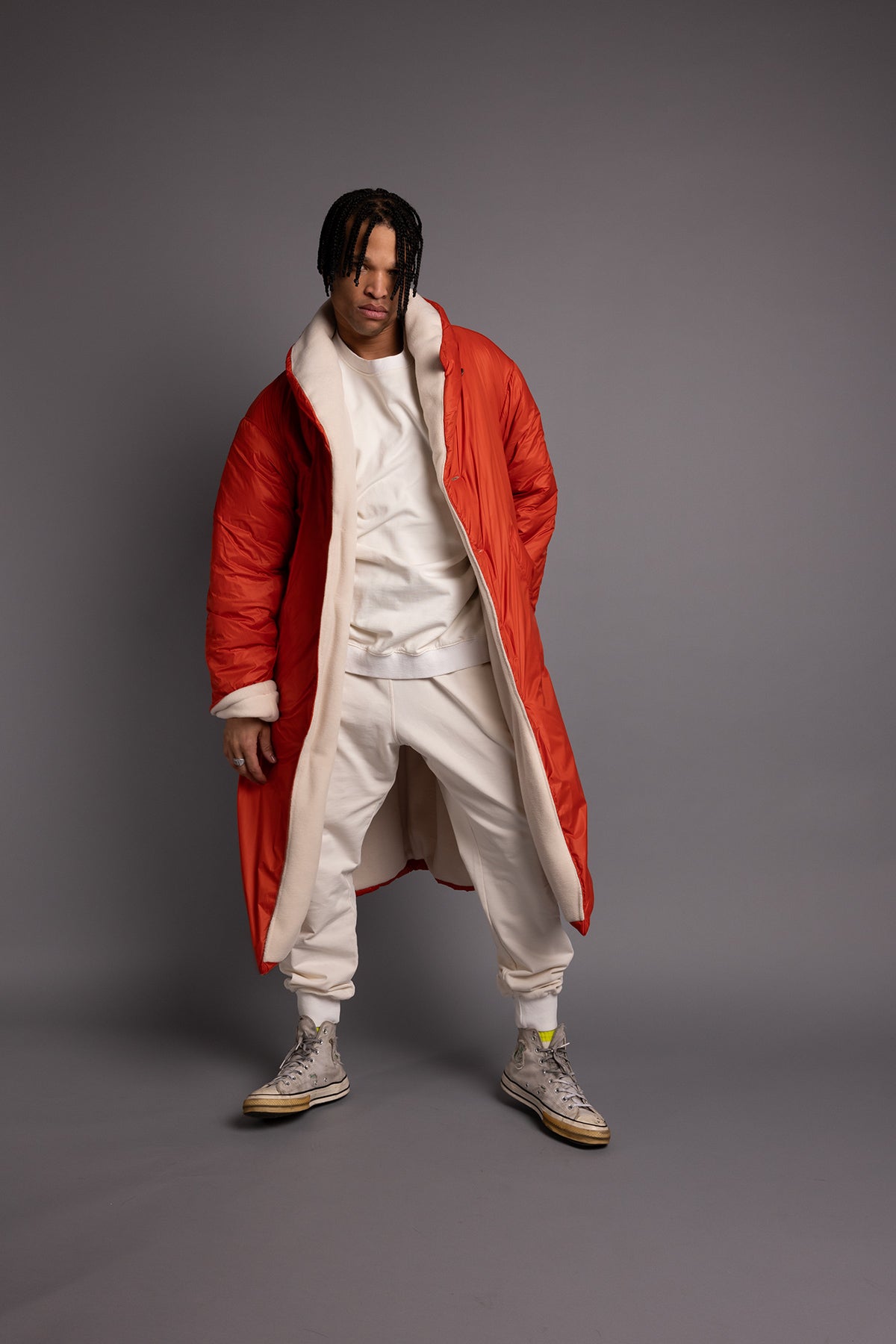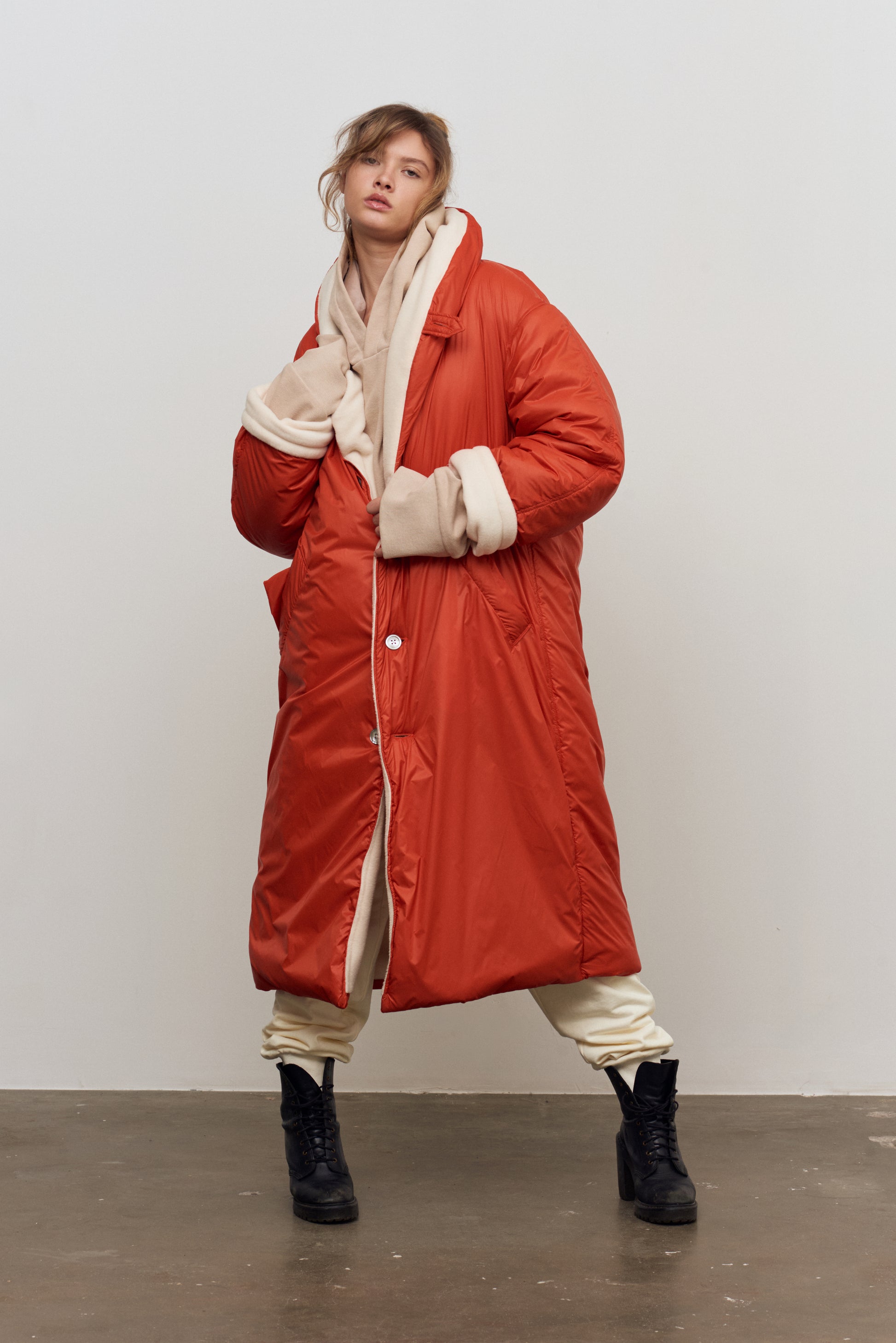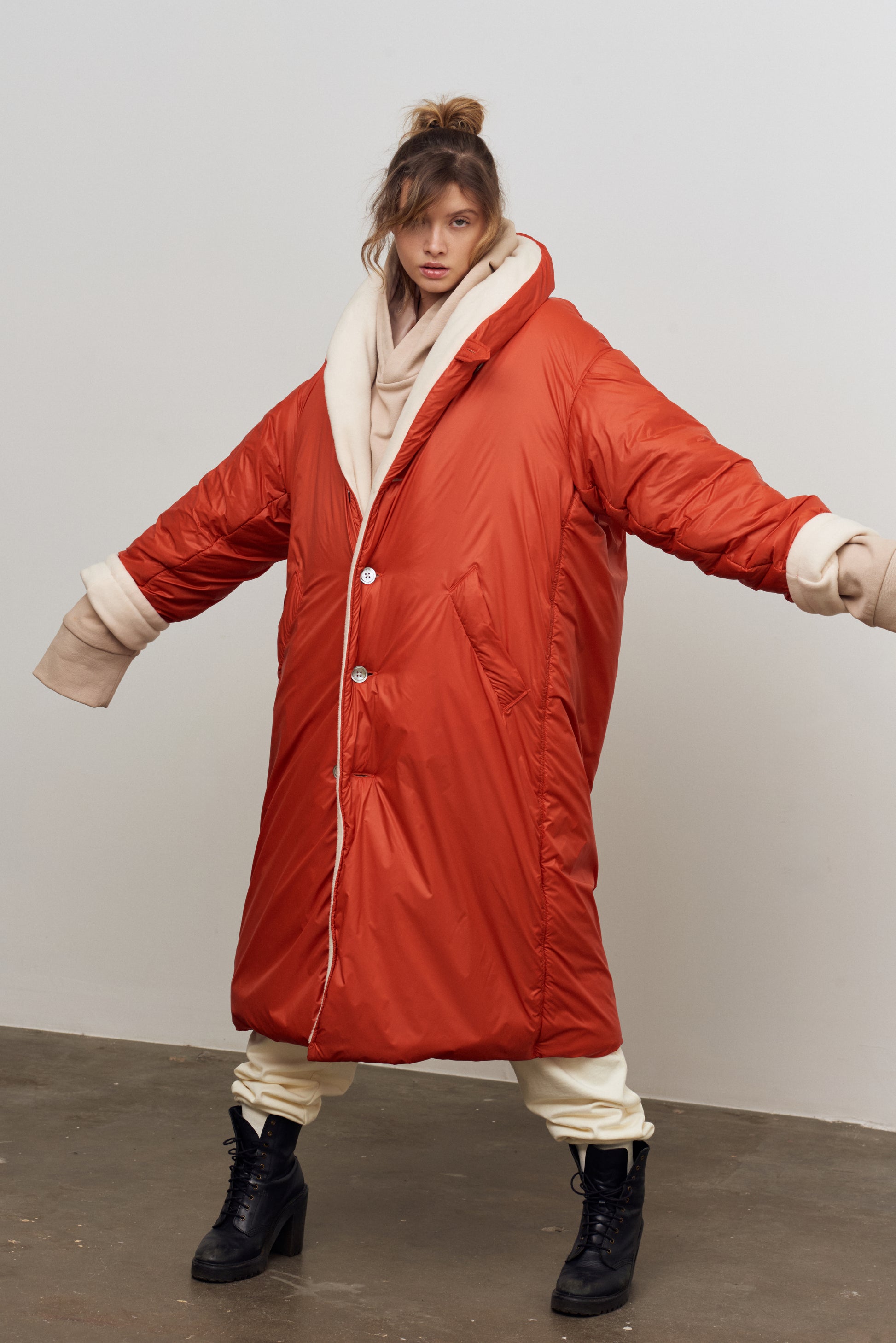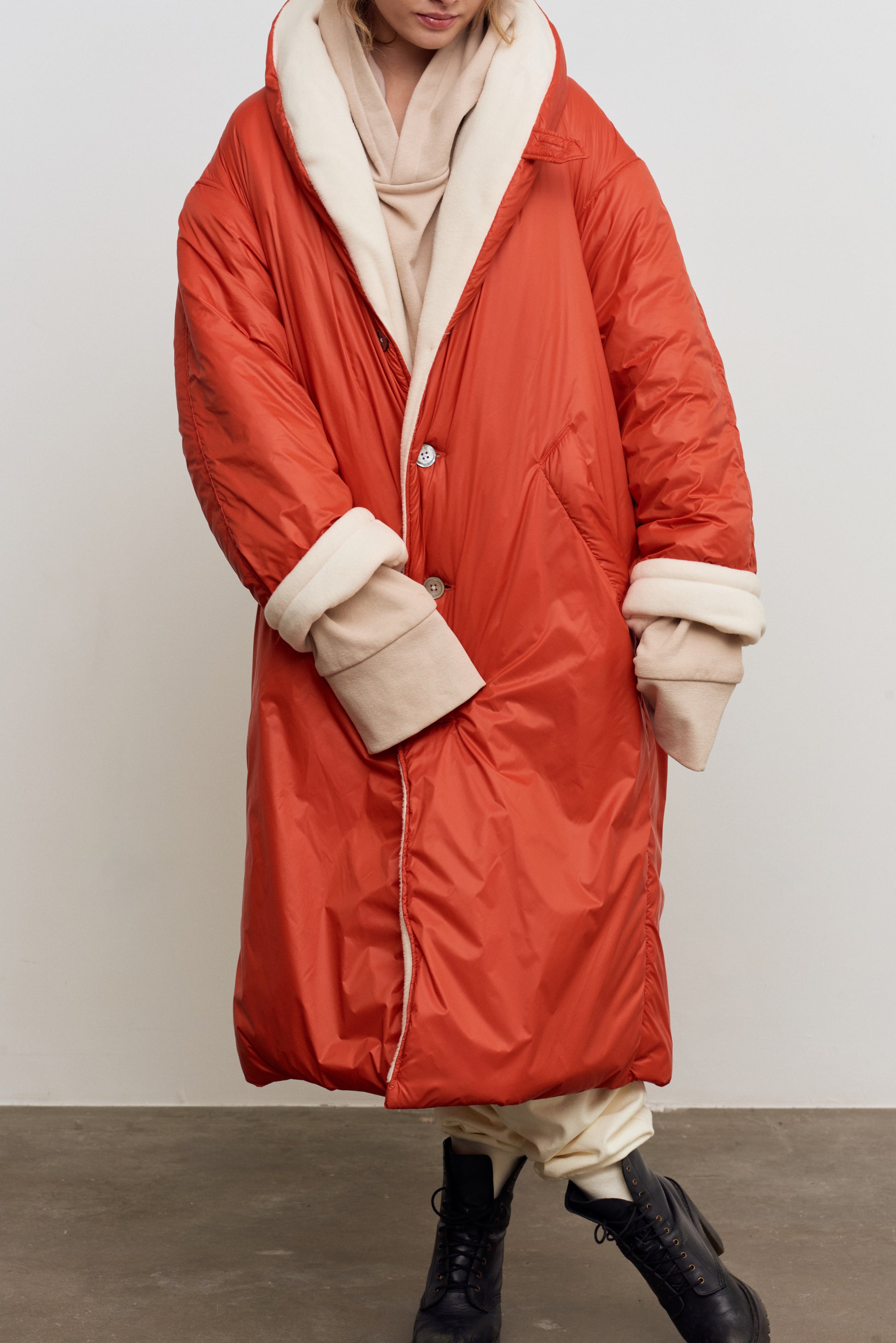 over sized cocoon coat, padded with natural hemp, made in love and war- as the hemp fabric imported from a Ukrainian hemp farm at a village that while sending us this fiber, was under attack.