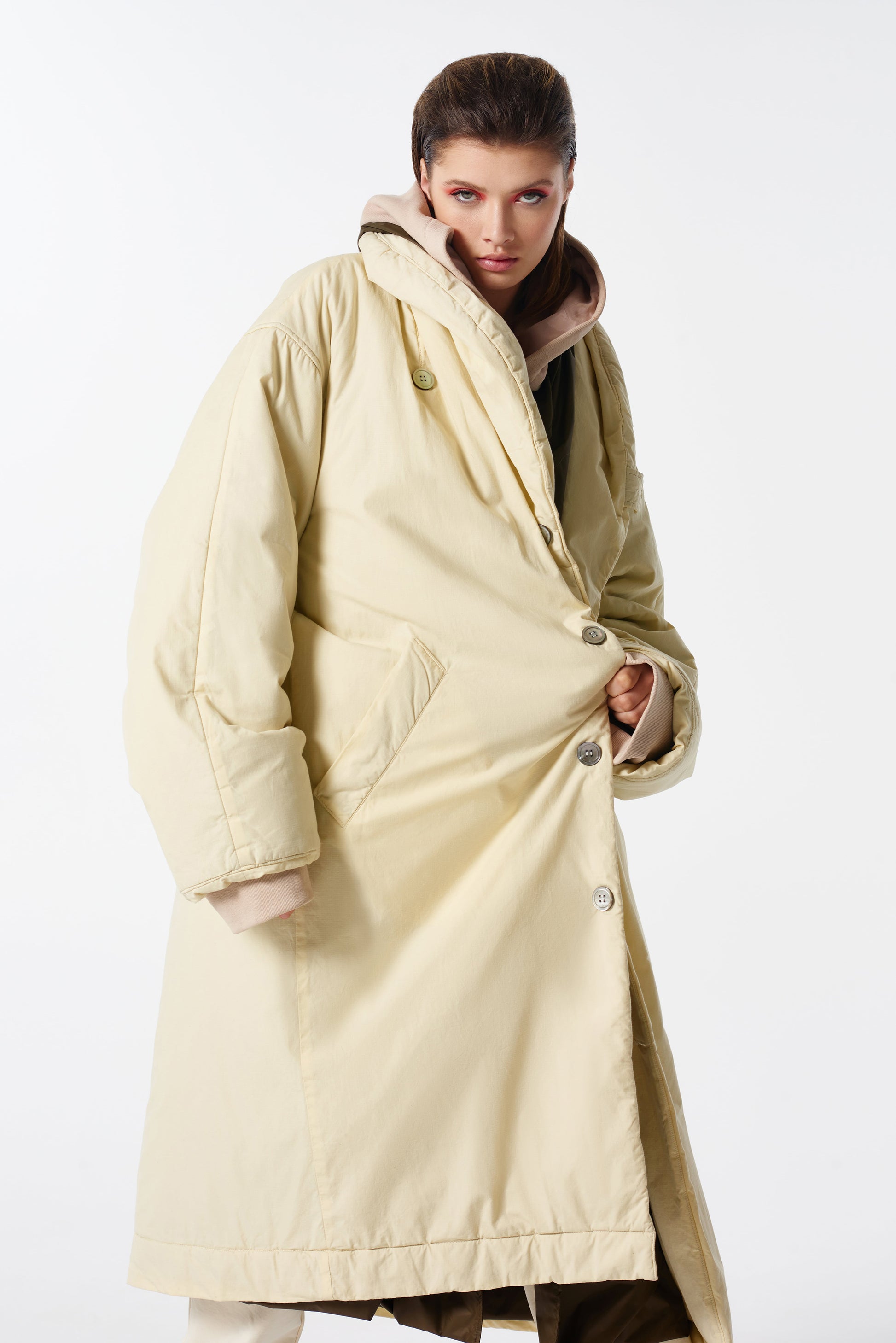 butter cream cotton from italy filled with hemp fiber, mother of pearl buttons